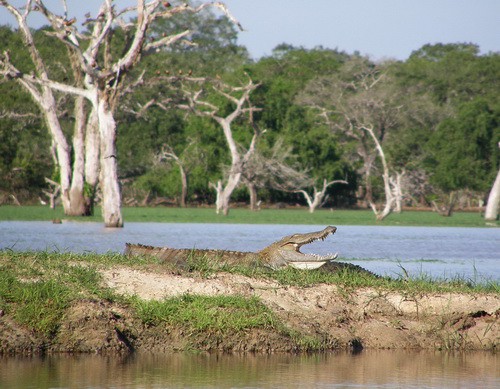 двух огромных крокодилов,