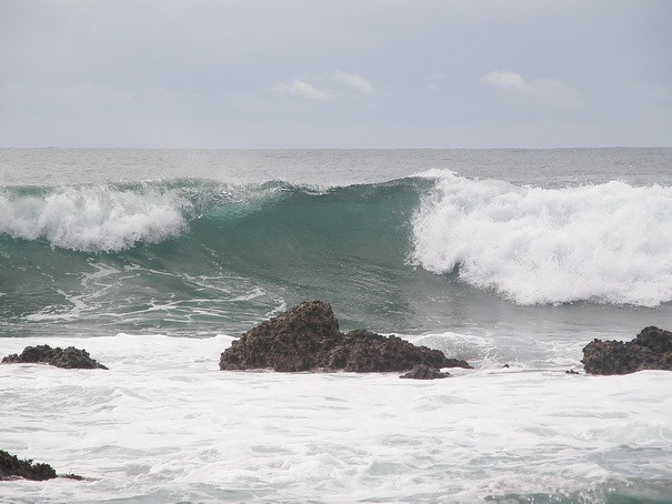 Отлив здесь с 08:00 утра до 12:00, затем начинается прилив. В 500 метрах от берега рифовый барьер. За барьером огромные волны в океане,