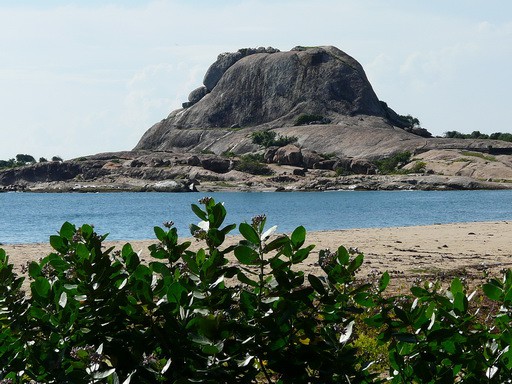 Здесь когда-то была гостиница с аквапарком. 24 декабря 2004 года цунами (7 метровая волна) смыло всё. Остался фундамент и стволы погибших деревьев.