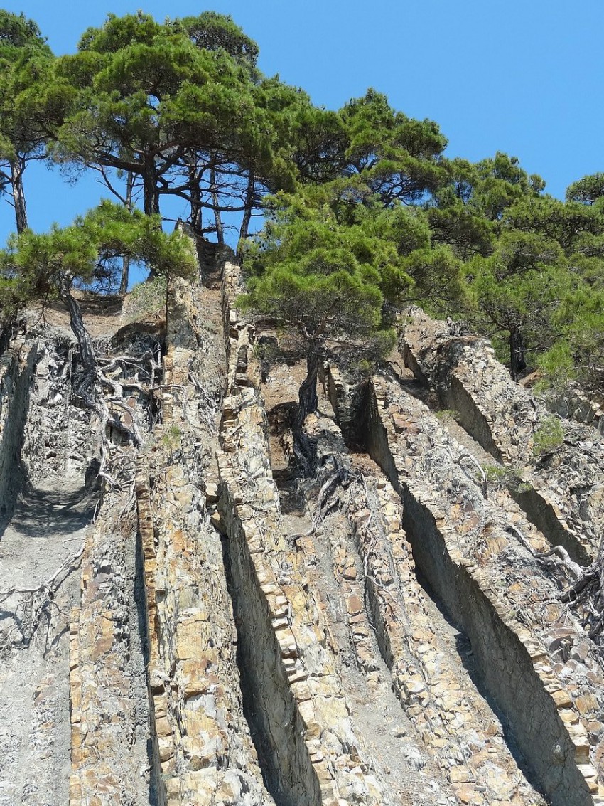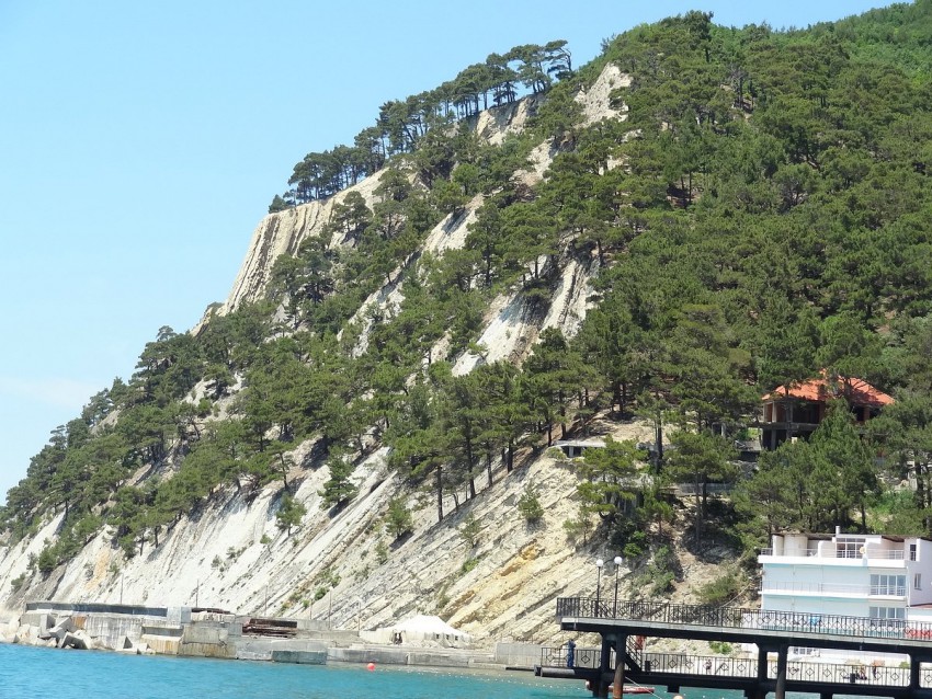 Крутой скальный берег от Дивноморского до Прасковеевки заселяет знаменитая пицундская сосна
