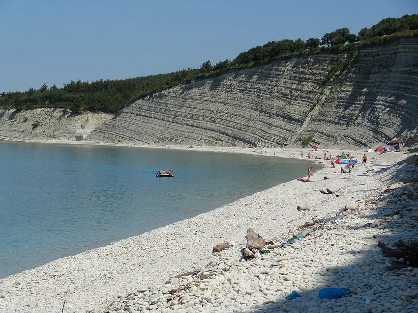на берегу встречается лечебная голубая глина и люди ей мажутся