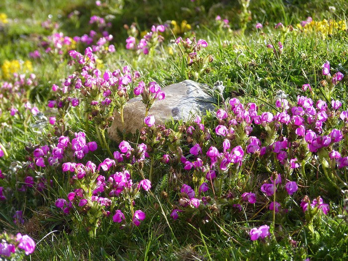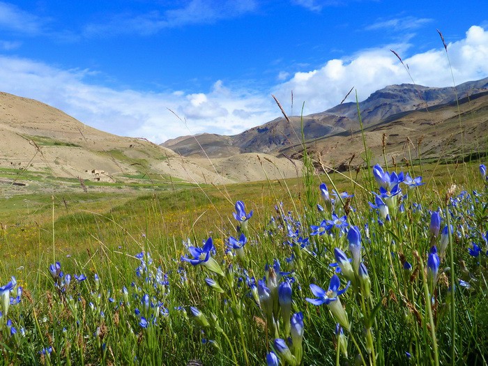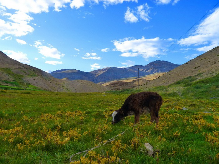 Сильный ветер. Спустились в долину реки. Обширные поля, сочная трава и немного цветов.