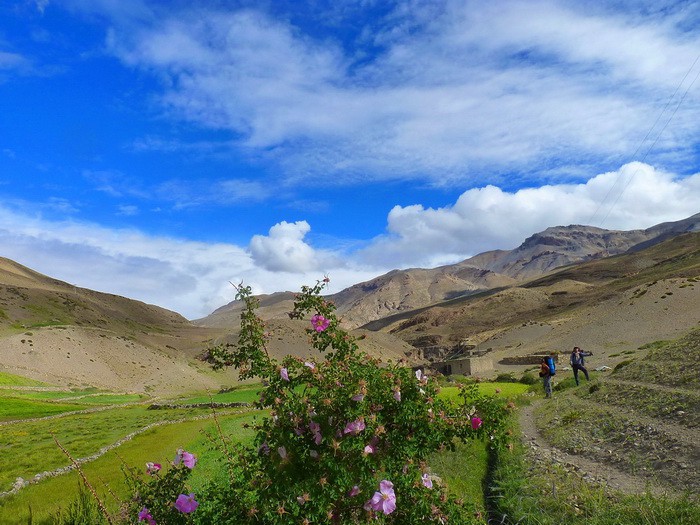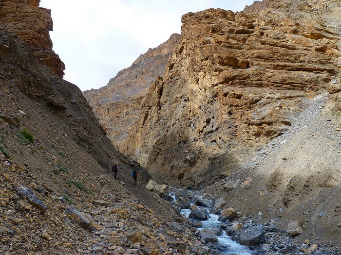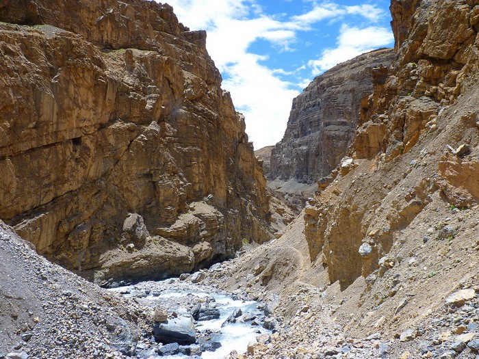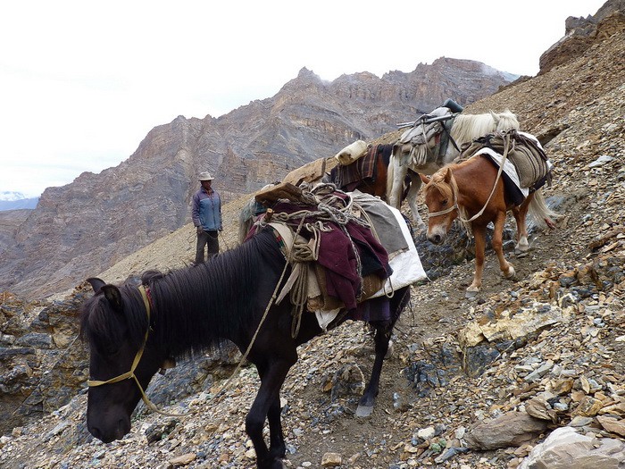 После обеда начинается наш треккинг на перевал Паранг ла (5537 м). Предстоит пройти более 30 км только в одну сторону по труднейшей тропе среди высоченных вершин, глубоких ущелий, с тяжёлыми рюкзаками при недостатке кислорода в воздухе, при испепеляющей жаре и холодных дождях.
