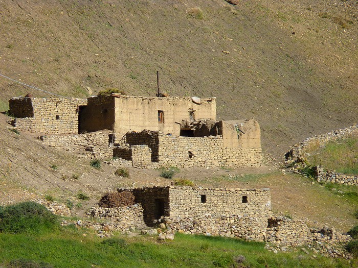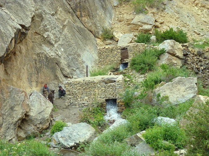 Затем крутой подъём. Слева на речке замечаем малюсенькие каменные сооружения. Как выяснили потом — это мельницы местных жителей, а рядом пристроено жилище, чтобы пережидать непогоду и холод.