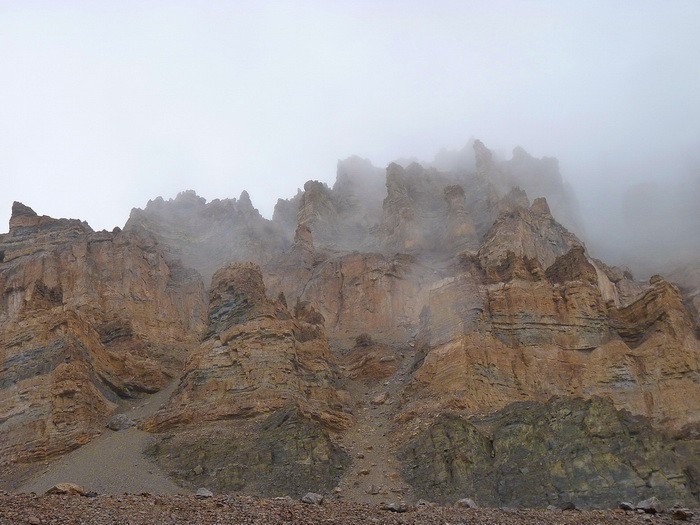 Наутро продолжаем путь выше. Нас окружают со всех сторон горы и скалы невиданной красоты. Как будто всё это нарисовано рукой волшебника. У всех участников постонно отвисает челюсть от удивления.