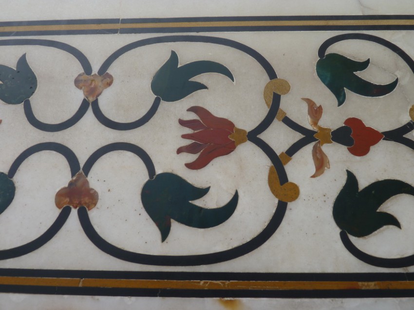 Строительсво продолжалось более 20лет и в нём принимало участие одновременно до 20тыс человек, включая лучших зодчих и архитекторов, приглашённых из Персии, Турции, Самаарканда, Венеции и самой Индии. Стены Тадж Махала выложены белым полированным мрамором, сияющим как снег под лучами полуденного солнца. Прекрасный своими совершенными формами, он поражает и своими деталями — изящной резьбой, ажурными решётками и драгоценными камушками, сверкающими в белоснежных стенах. Сводчатые переходы украшены арабской вязью.