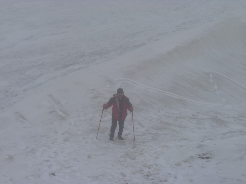 Наконец мы на перевале. Сильный ветер, мороз, туман, но мы счастливы.