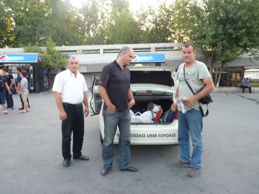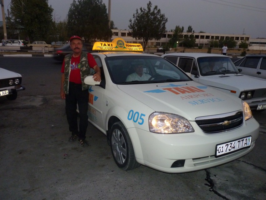Таксист — слева. Зовут Бахадыр. Взял у него телефончик на будущее. Большое ему спасибо. Без него мы бы так близко не познакомились с Ташкентом.