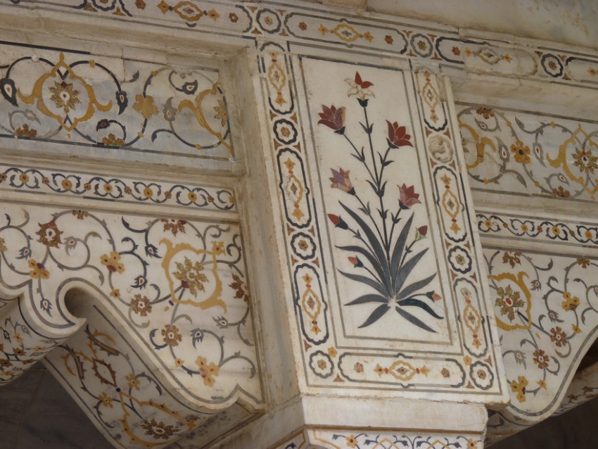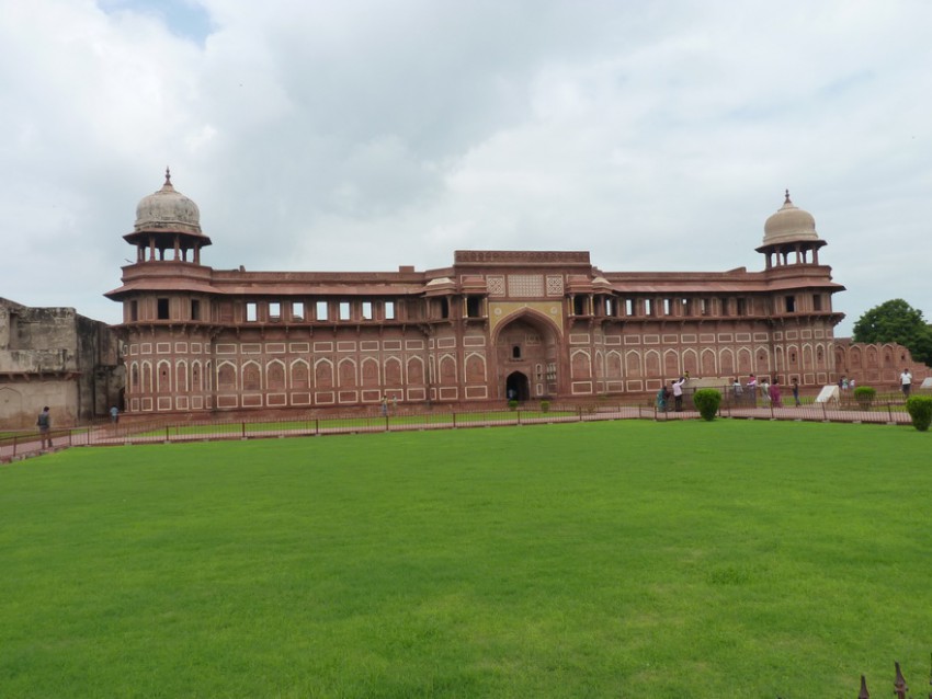 Далее посещаем Красный Форт. Он был построен из красного песчанника в 1565 году Акбаром-Великим с военной целью ( крепость) в связи с переносом столицы из Дели в Агру. Эта крепость состоит из множества дворцов, садов, купален и т.д. В настоящее время большая часть этого сооружения не доступна туристам, т.к. занята индийской армией.