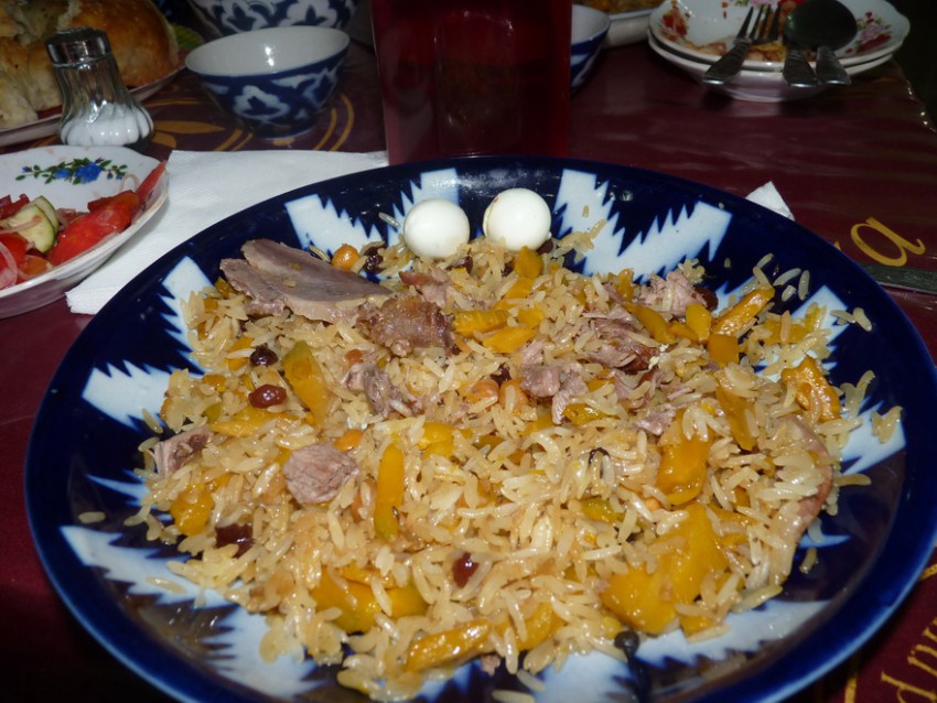 Пообедали настоящим узбекским пловом в Центре Плова.