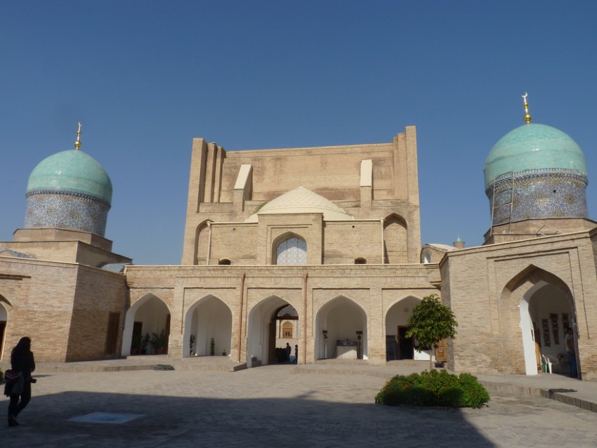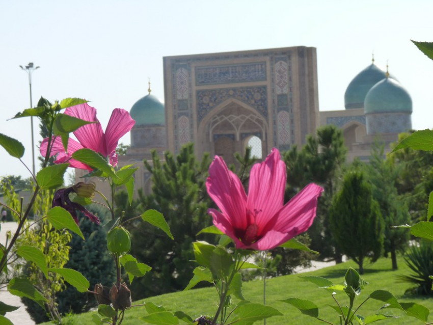 2,5 часа перелёта из Дели и мы находимся в столице Узбекистана — Тошкенте. Именно так — вторая буква в настоящее время — о. Сухо. Жара + 40 в тени.
