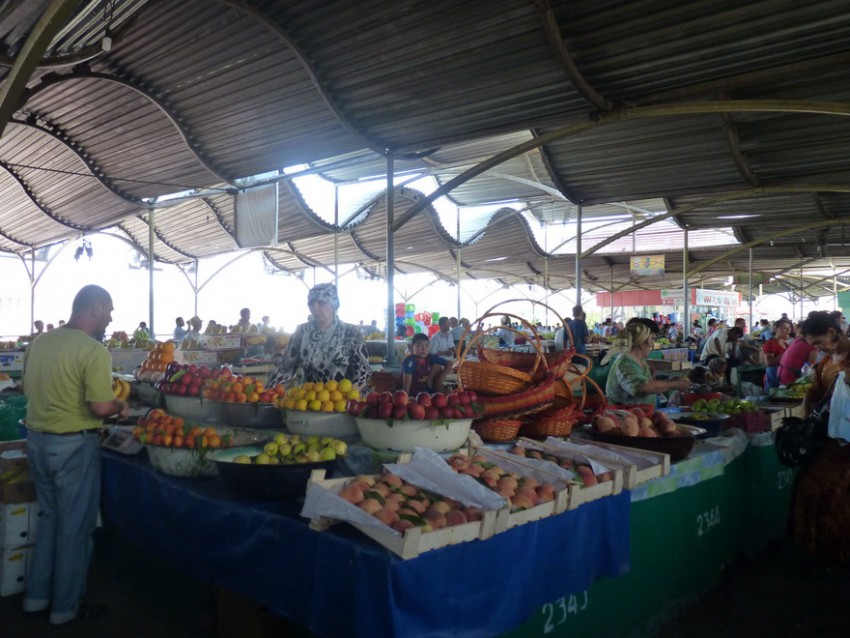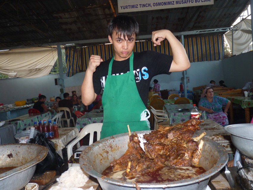 В одной из уличных забегаловок-кафе попробовали шашлыка по узбекски. Удивительное место! Горы мяса разных сортов, но очень всё вкусно и разнобразно. А запахи! Дым коромыслом, но очень приятен.