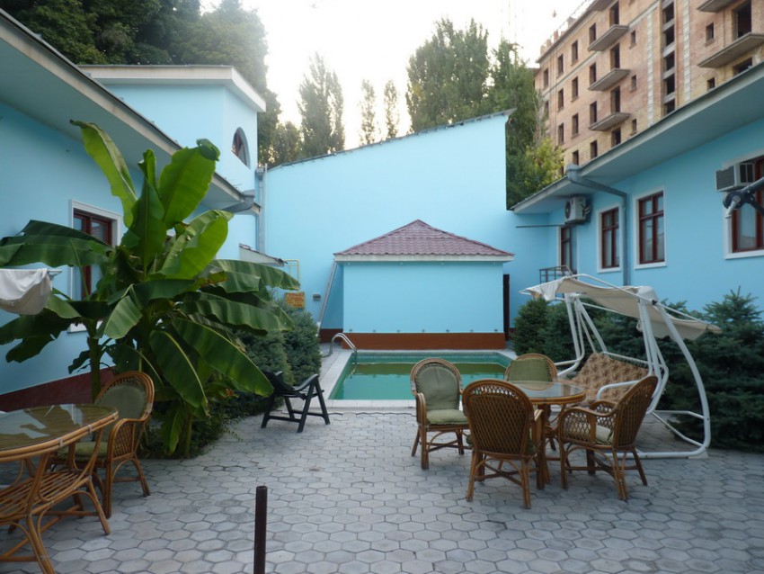 затем я ночую на открытом воздухе на этом качающемся диванчике у бассейна под звёздным небом Узбекистана ( номер был двухместный, а нас трое). Эта удивительная последняя ночь в нашем 25-ти дневном путешествии!
