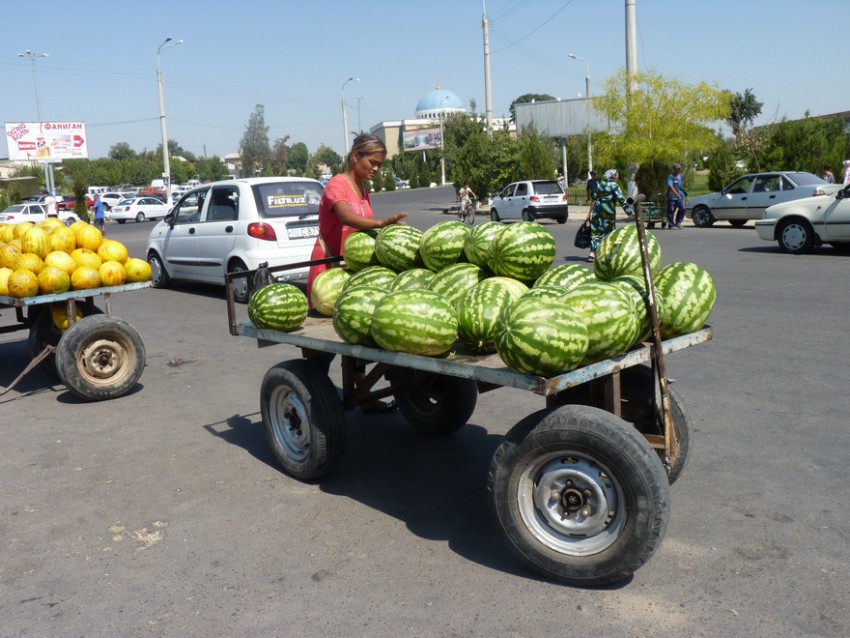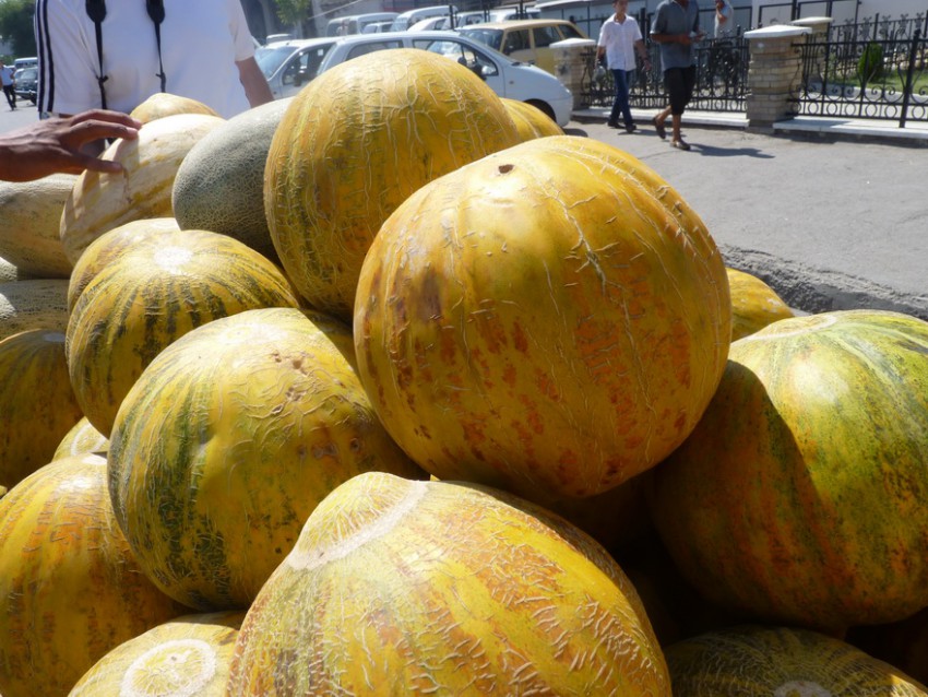 По соседству увидели арбузы и дыни. Купили сколько смогли унести.