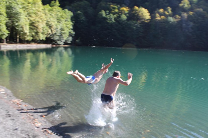 В Абхазии сейчас уже хорошо, людской поток практически схлынул, пустые улицы в Гаграх и пустые пляжи, хотя вода ещё по-летнему тёплая, сезон завершён. Погода стоит тёплая, нет ещё настоящей осени, платаны немного осыпались, а вокруг лето, даже по дороге на Рицу ещё лес зелёный.