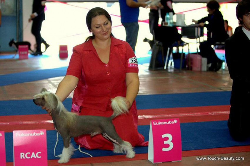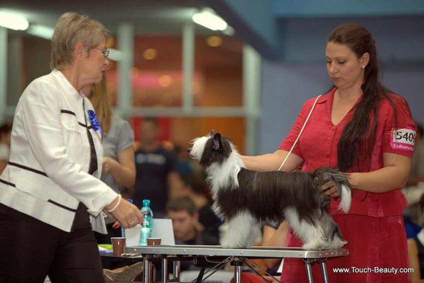 С Фрейкой получилось немного похуже – после того, как ее начесали, я дала ей лечь и заснуть на столе. В итоге – пришлось ее резко будить, хватать и идти в ринг, что сказалось на показе. В себя она пришла только в середине экспертизы. Все равно, мы были очень рады ее 4 месту в расстановке на Чемпионате Европы!