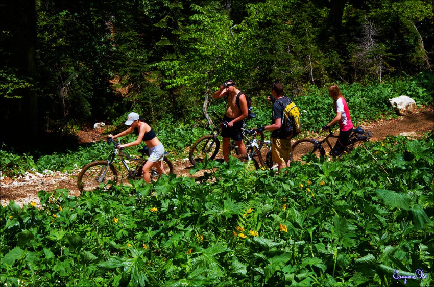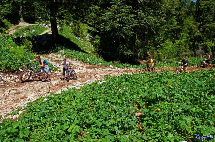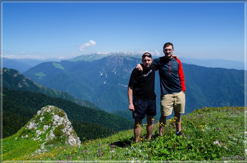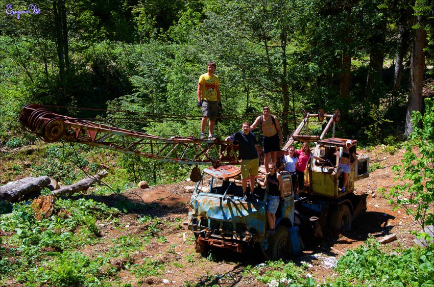 Рано утром мы погрузились на заранее зафрахтованный микроавтобус немецкой марки с прицепом, куда бережно уложили свои байки и тронулись в направлении горы Мамдзышха. Из центра Гагры до вершины 35 км, но мы десантировались где-то за 4 км до вершины, так как наш авто далее уже не мог пробираться, да и нам хотелось полюбоваться красотами.