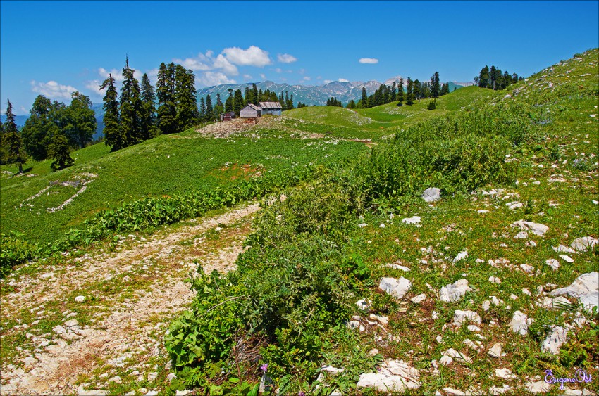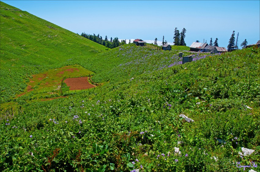 Проезжаем мимо пастушьих балаганов и цветущих лугов