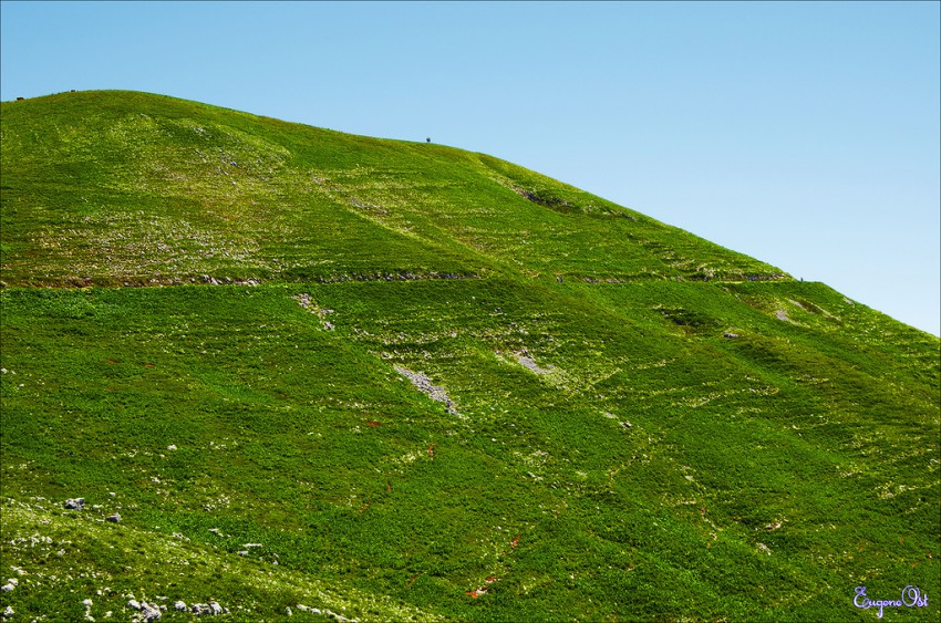 Посреди зелёных, цветущих просторов лежал небольшой снежник под которым находилась карстовая воронка