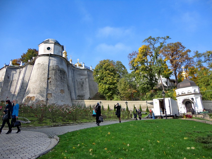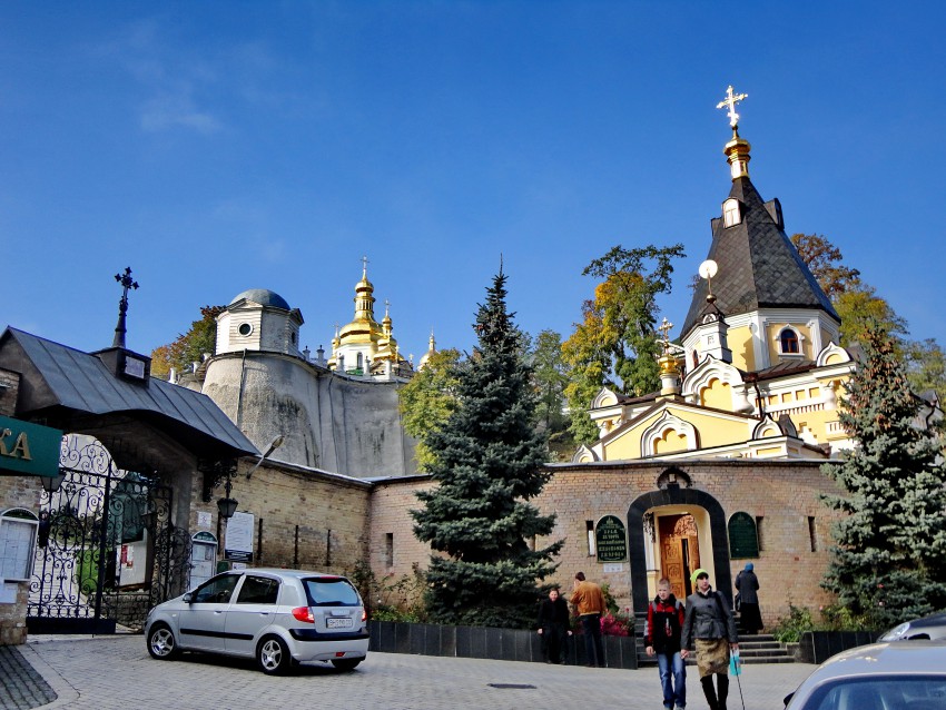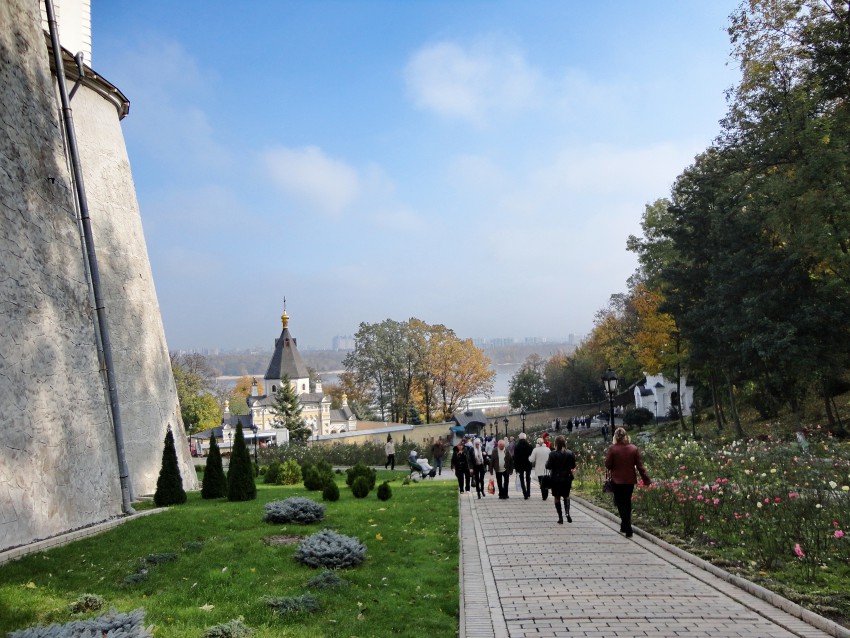Свой путь я начал от ст. метро «Днепр». Поднявшись на холм по ответвлению Набережного шоссе и Днепровскому спуску я оказался у задних врат Нижней Лавры.