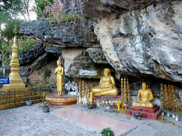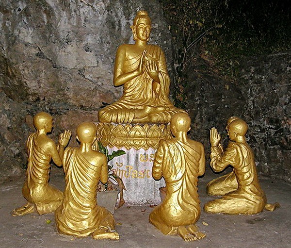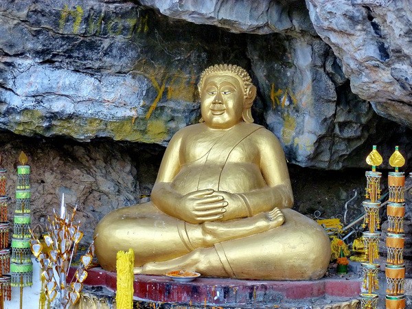 При спуске с холма посетили маленькие гроты с Буддами. В первом гроте — «перед трапезой».