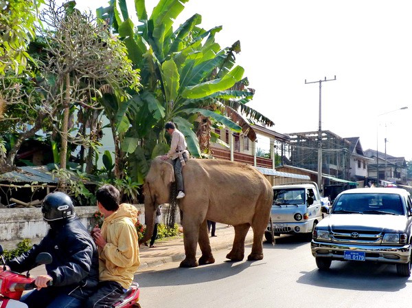 В Лаосе «ГАИшники» передвигаются на слонах и развлекают туристов.
