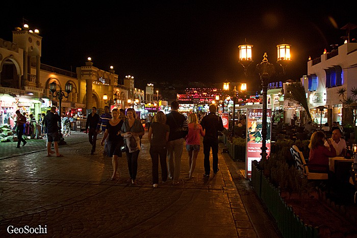 Аэропорт шикарен и современен — огромные пространства под подвесной крышей, эскалаторы, магазины, кафе, обменники, куча мест для народа. Оформление визы (15$) и таможенные формальности заняли около 15 минут, ещё минут 10 дожидаемся багажа. Здесь нас уже ждут и отвозят в город на комфортабельном микроавтобусе. Наш отель в популярном туристском районе Наама Бэй (Naama Bay).