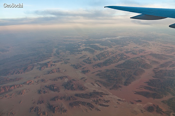 и вот, под крылом мелькают белоснежные отели Египетского курорта, выстроенного прямо в Синайской пустыне.
