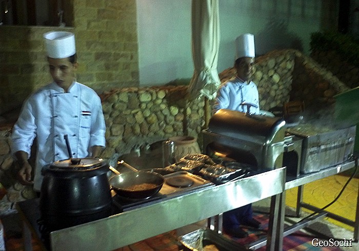 Сразу попадаем на сытный ужин, помимо обильного шведского стола, горы тортиков и сладостей, у бассейна мангал на котором готовят барбекю из нескольких видов сочного мяса и вкусные лепёшки. Начинаем не на шутку волноваться по поводу набора лишнего веса.
