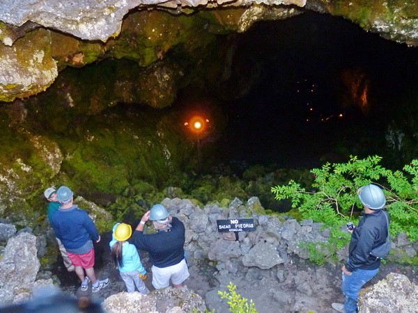 Наш гид перед экскурсией по лавовой пещере показывал нам «фокусы».