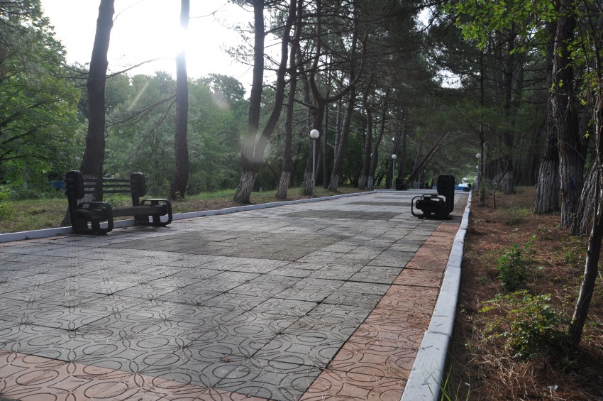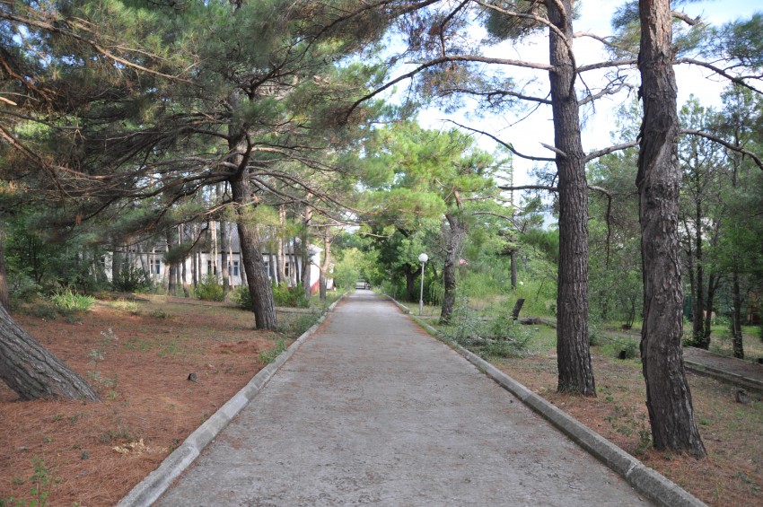 Центральная аллея парка. По ней отряды два раза в день (утром и вечером) шли на море, пели песни и орали кричалки, соревнуясь, кто громче.