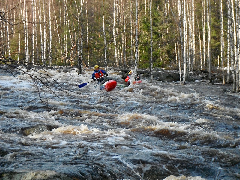 Приехали мы в Петрозаводск 29 апреля. Потом на ПАЗике четыре часа тряслись по разбитой дороге. В поселке Лаймола собрали катамараны и поплыли.