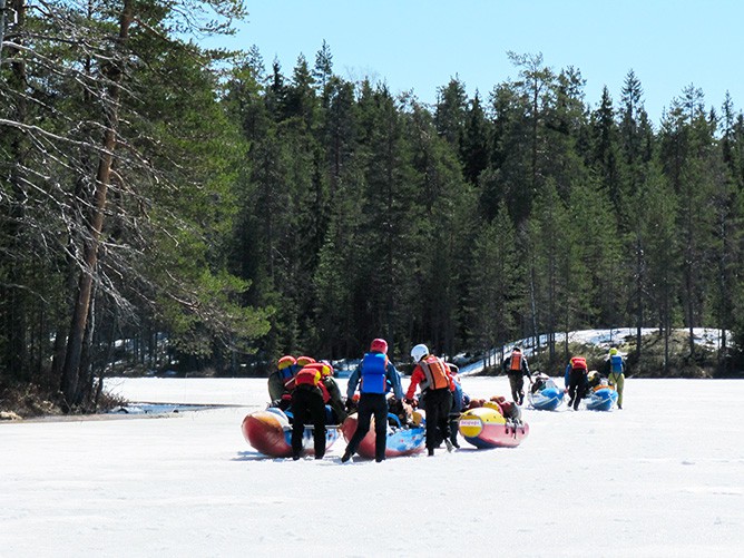 Прошли восемь порогов, три замерзших и полузамерзших озера и один волок (6км с реки Лоймола на реку Уукса).