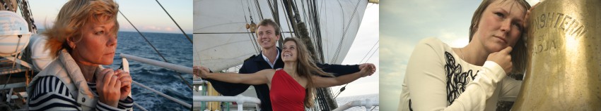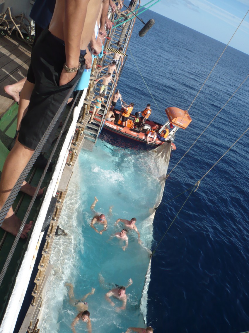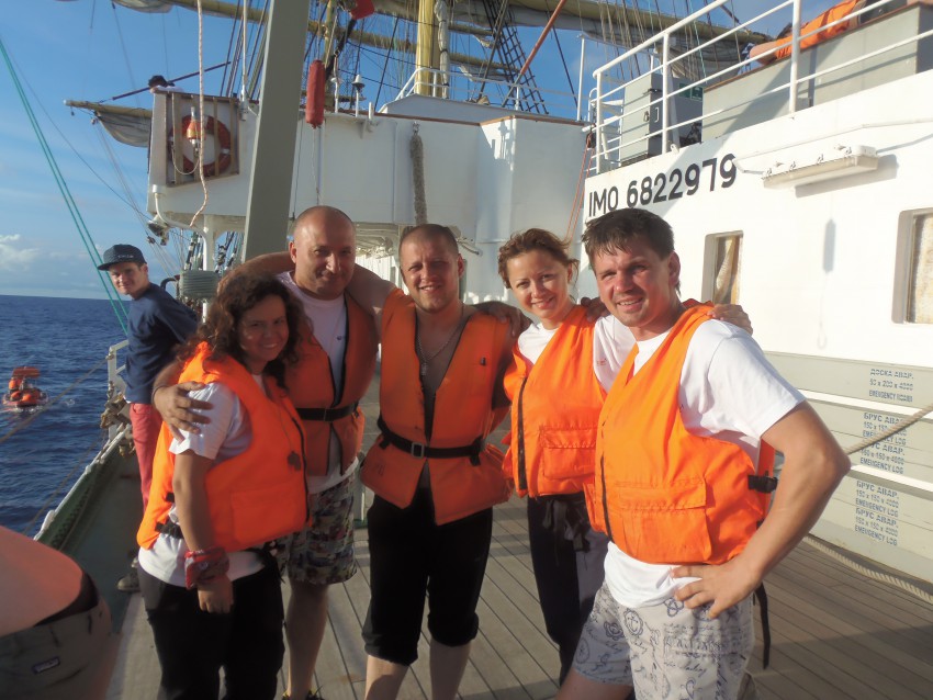 На следующий день или в этот… Нам устроили морскую эстафету. Дело было еще в Атлантическом океане. Нам опустили парус в воду.