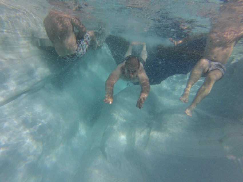 Второй плывет обратно в ЖРС (жилет рабочий спасательный — поменьше и поудобне, чем просто спасательный)