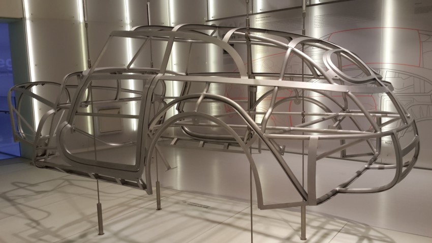 Не совсем, конечно, но поблизости. Извечная проблема туриста: впихнуть невпихуемое. Применимо к описываемой ситуации — уложить осмотр BMW Welt в каких-то полтора-два часа. Билеты и аудиогид в зубы — и понеслась, осмотр начинаем не как все нормальные люди, снизу, а почему-то в хронологическом порядке. Первая продукция завода: