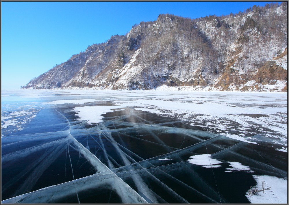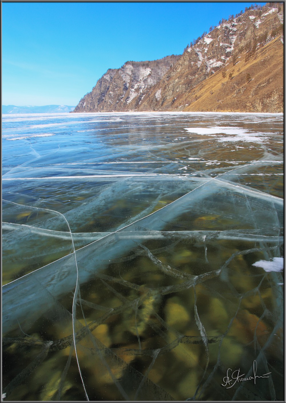 Можно часами бродить по льду фотографируя трещины-узоры Байкала.