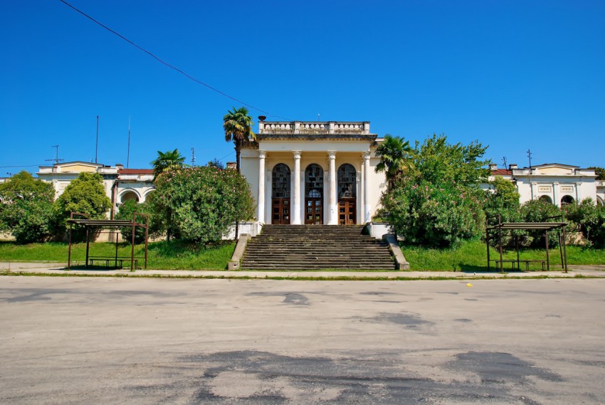 По приезду нас встречает вокзал Гудаута, он находится в плачевном состоянии, но архитектурная задумка интересная.