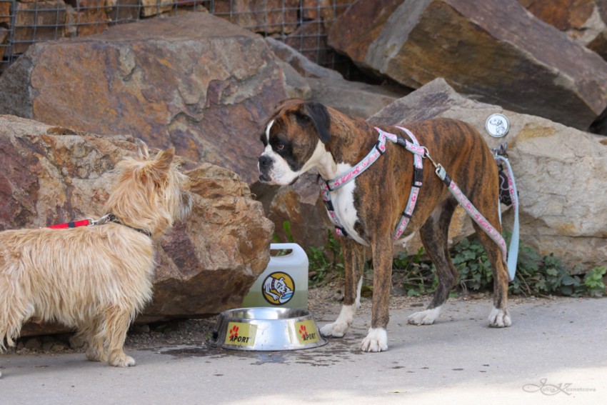 В зоопарке так же заботятся и о питомцах, с которыми приходят посетители. Перед помещениями, в которые запрещен вход с животными, есть специальные места, где можно оставить своего питомца. Предусмотрительно стоят миска и канистра с водой
