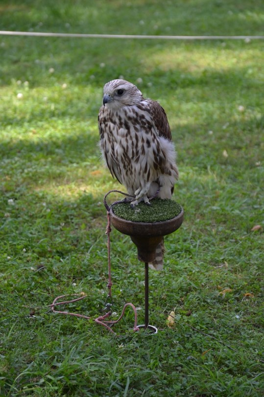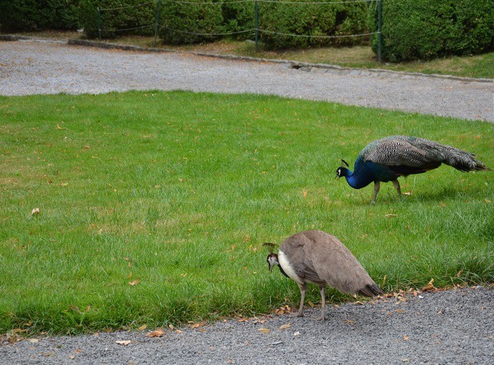 На территории замка встречаем «выставку» птиц, с которыми можно сфотографироваться