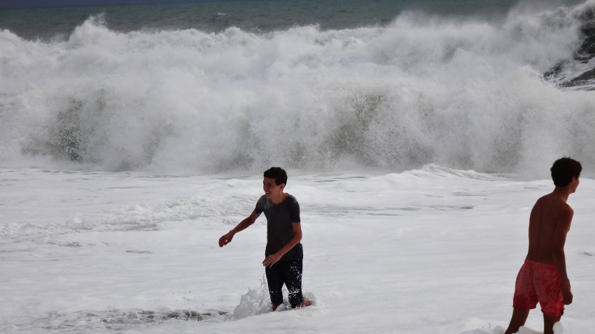 А на море бушует шторм, привлекая местных подростков рискнуть своей жизнью.