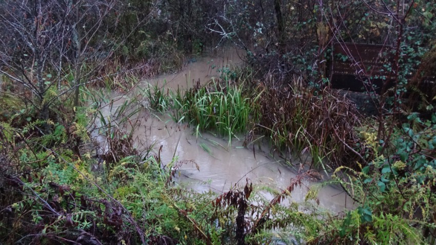 Под дорогой вода проходит по трубе. А на другой стороне вот такая картина.