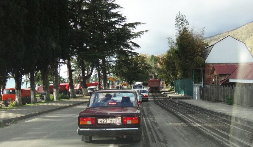 А на следующий день дорога домой. С обязательными заездами для купания в горячих источниках Кындыга, закупкой цитрусовых в Уарче, не особо продолжительной стоянкой в Гагре, где продолжается ремонт основной дороги.