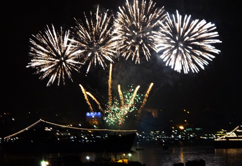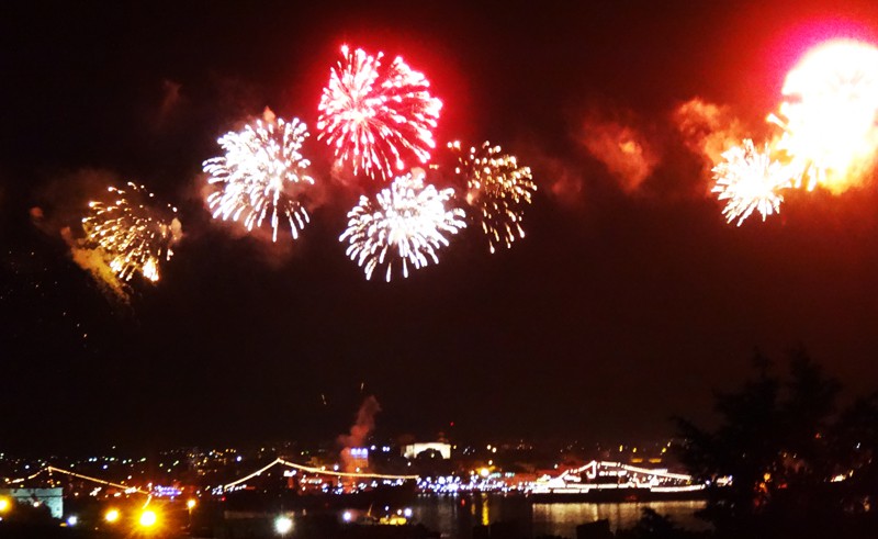 А вечером в 10 часов был салют, а затем фейеверк, на созерцание которого мы специально выезжали на какой-то бугор на Северной стороне, рекомендованный хозяйкой нашего отельчика.
