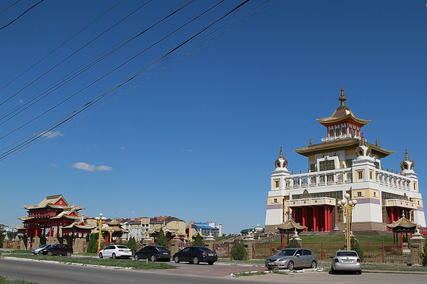А мы направляемся к крупнейшему в России и Европе буддийскому хурулу, представляющему собой огромное белоснежное здание, выполненное в характерном буддийской культуре стиле.