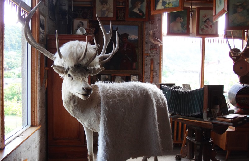 Создатель этого частного этнографического музея Георгий Хецуриани. Фотограф, художник, охотник, чеканщик, мастер на все руки, владеющий не одним десятком профессий, Георгий много лет собирал все, что связано с историей и бытом народов проживающих в Абхазии.