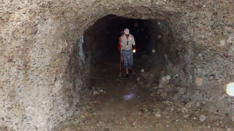 Тоннель, а что это не пещера, а рукотворный тоннель, видно сразу, размеров не маленьких. Кое-где высота доходит до трех человеческих ростов.