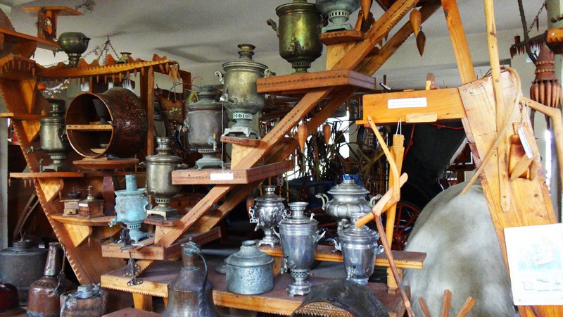 Чего только нет в этом 2-х этажном доме, построенном специально для музея — и фаэтон, на котором ездил принц Ольденбургский, и орудия труда, и чаны, и бочки для вина, макеты балаганов пастухов в горах, оружие, инструменты… всего невозможно перечислить.