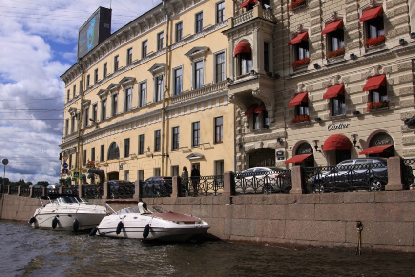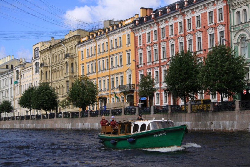 Кто только собирается в Питер — рекомендую начинать именно такое путешествие, т.е. не с Невы. Вы тогда кроме Невы ничего и не увидите. Ведь не даром Санкт-Петербург называют ещё и северной Венецией. Правда от задуманных ещё при Петре 1 на сегодня осталось не так и много каналов. И многие из некогда прорытых давно засыпаны и превращены в улицы. Но и тех, что остались, более-чем достаточно, что бы насладиться величественными видами Петербурга с воды. А начинать надо обязательно где-то на Фонтанке, канале Грибоедова, Мойки… С последней наш кораблик, как раз и отчалил.
