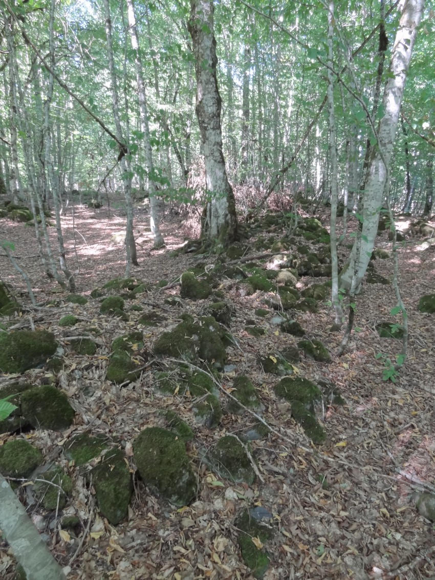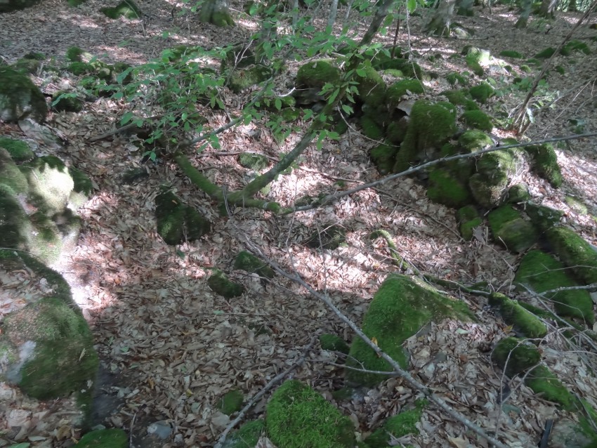 Дальше я отправился на поиски дольмена и менгира на реке Агурипсте. Как писалось в одной из книг— легкая экскурсия на 2 часа. В результате потратил почти весь день и зашел довольно далеко. Дольмен не нашел, зато обнаружил древний каменный город. Полосы камней, явно рукотворного происхождения, тянутся на десятки метров, образуя причудливый лабиринт. Длина территории с фрагментами лабиринта — около километра.
